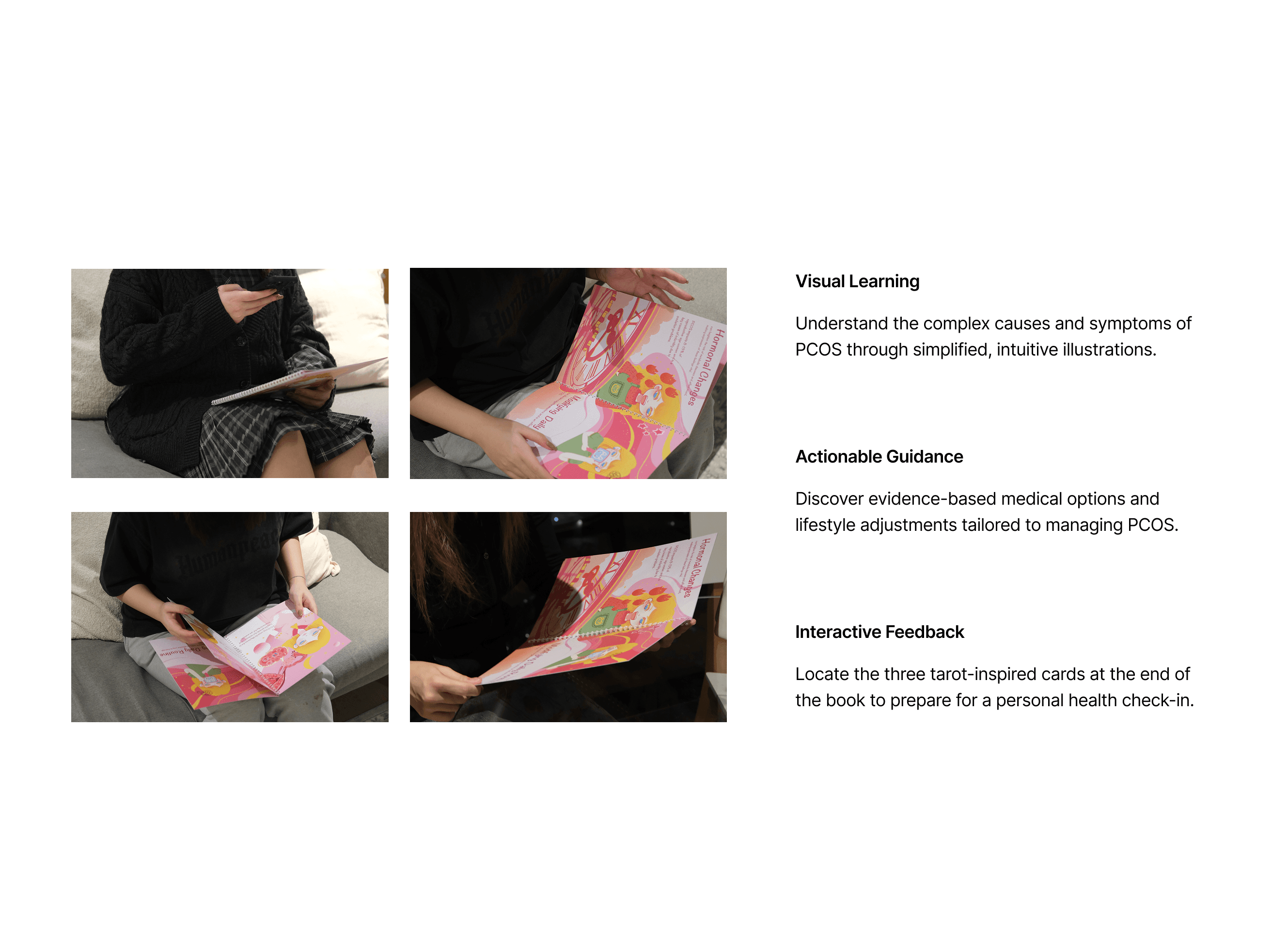 This project proposes a home-based system for managing PCOS that combines biological data, psychological support, and accessible education. A data-driven system that enables at-home hormone monitoring, translates biological data into psychologically informed guidance through an app, and uses illustrated storytelling to help users anticipate bodily changes, reduce anxiety, and manage PCOS in everyday life.