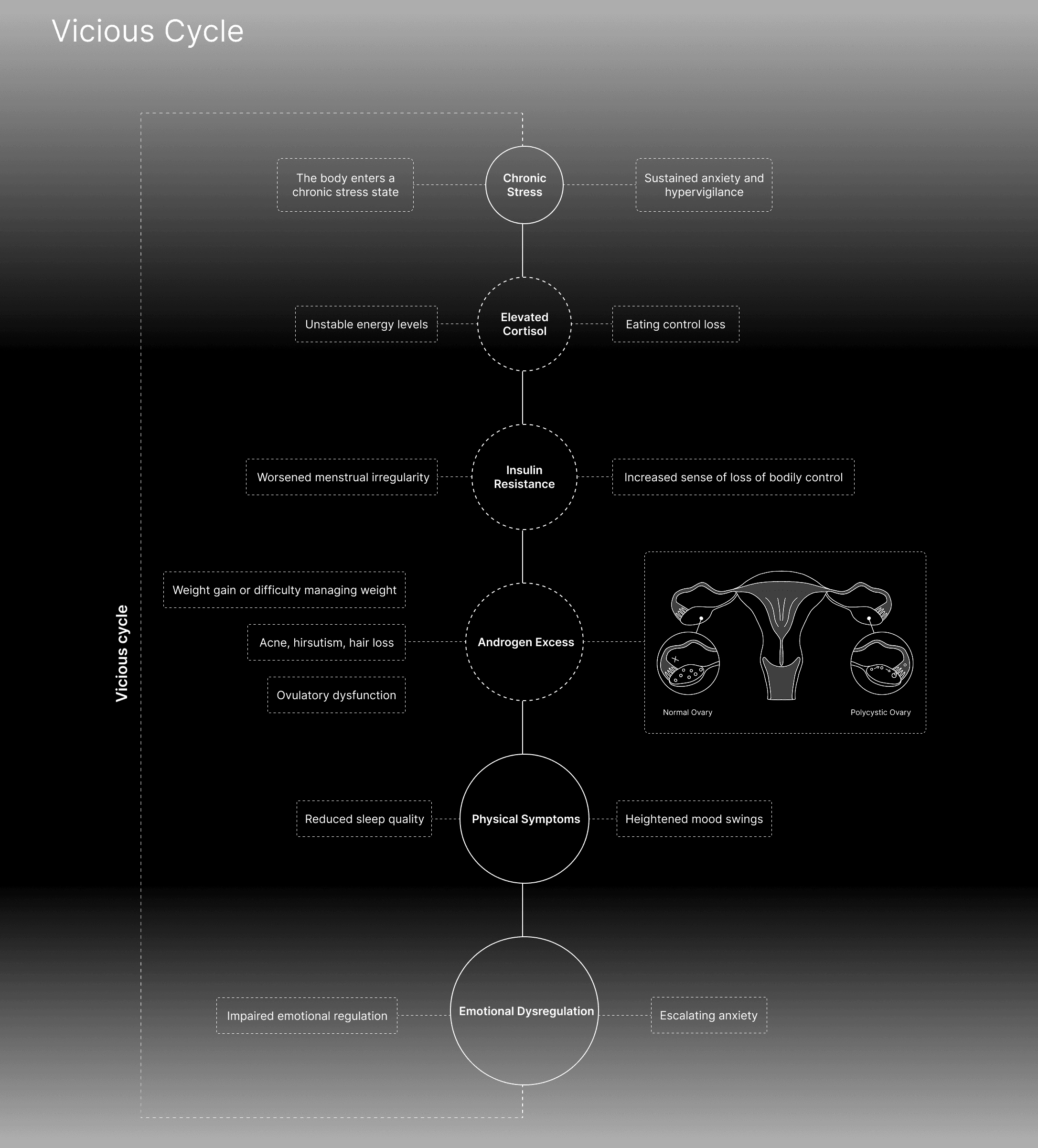 I designed this project based on my own experience living with PCOS. During my medical journey, I learned that PCOS is often not treated as a “curable disease.” Rather than offering a definitive treatment, clinicians primarily focus on managing its associated complications, such as irregular cycles, metabolic issues, or fertility challenges.