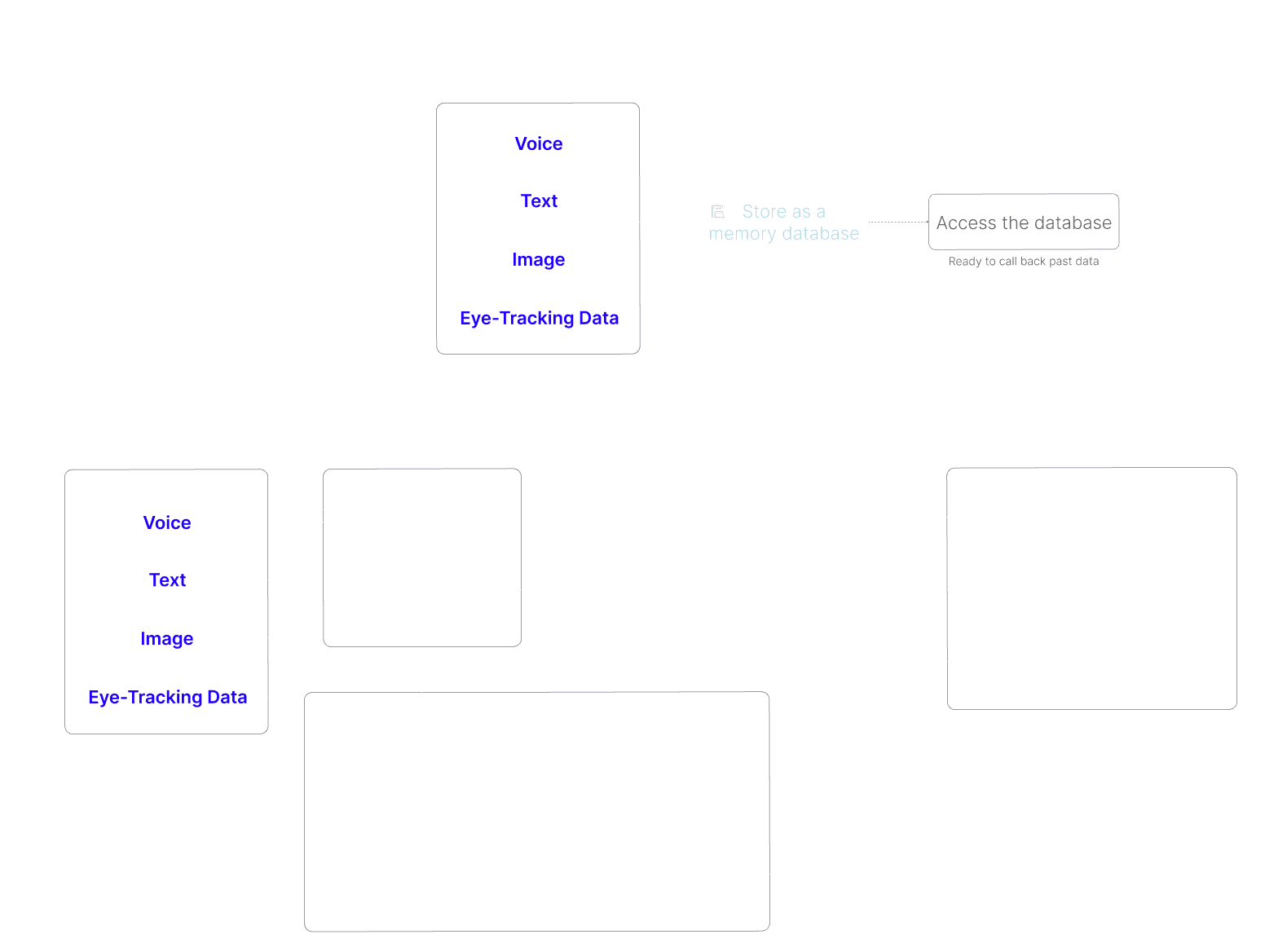 The system first builds a personalized memory database by passively collecting contextual information as the user goes about daily life. Voice input, images, text, and eye-tracking data are captured through smart glasses and stored together, allowing incomplete speech and loosely connected thoughts to be preserved as meaningful context rather than requiring structured input.