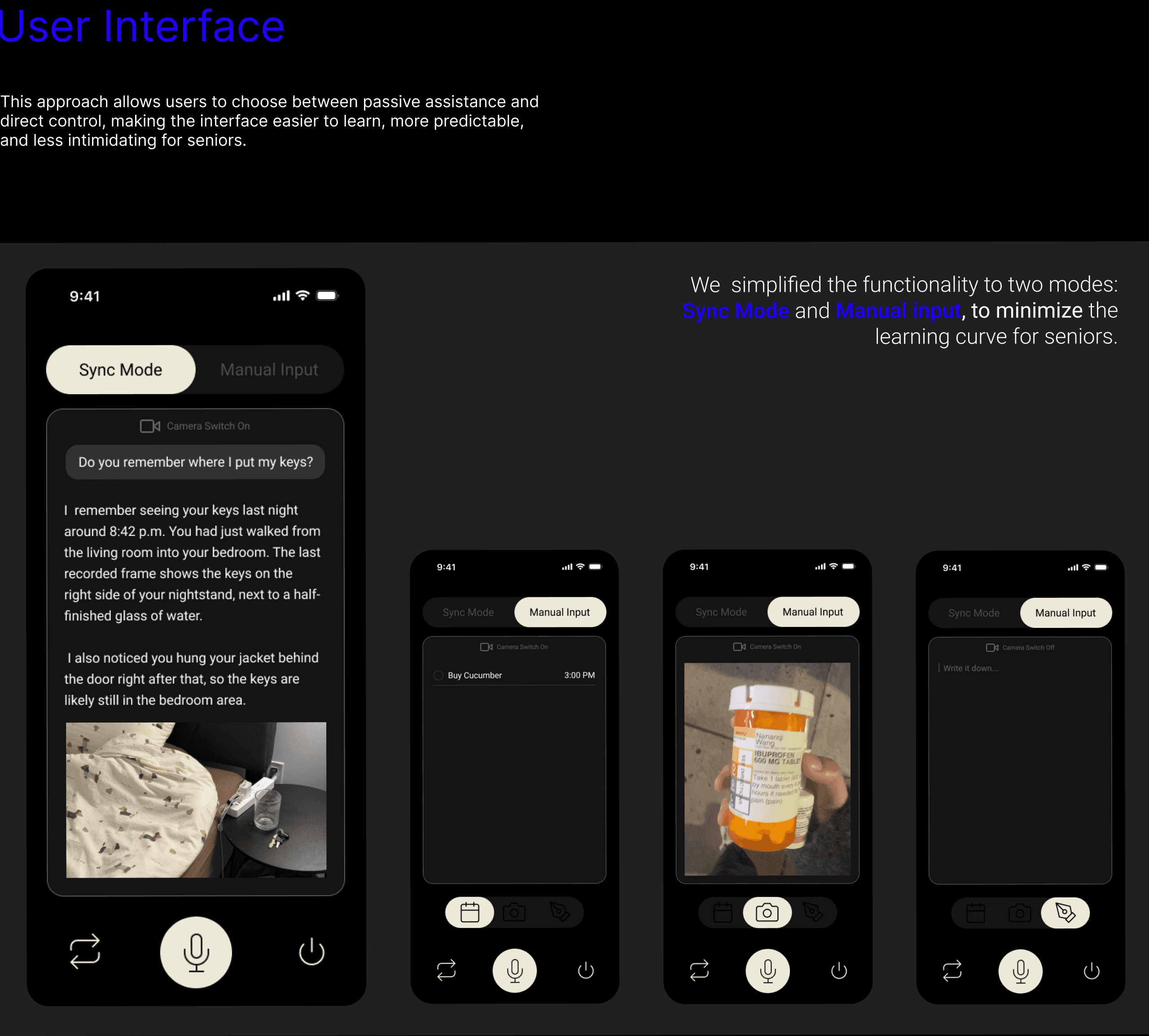 By breaking down information collection into continuous, low-effort steps, the system enables older adults to interact naturally, while the AI handles interpretation, organization, and memory continuity.