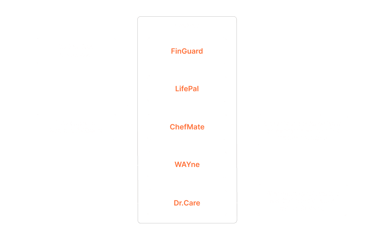 TendeeAI Pod comes with five built-in assistants designed to support key areas of daily life: finance, navigation, food, health, and everyday living.